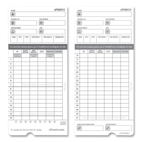 $2252$2477Unit price /UnavailableTime Clock Cards for uPunch HN4000, Two Sides, 7.37 x 3.37, 50/Pack (HNTCL2050)