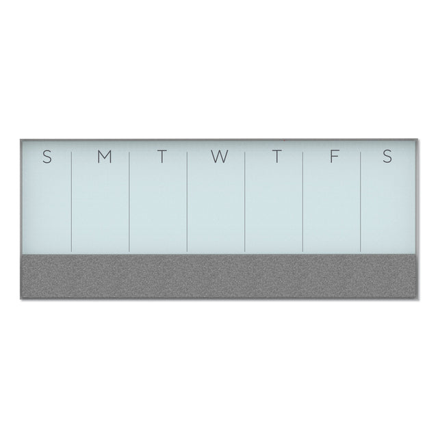U Brands 3N1 Magnetic Glass Dry Erase Combo Board, Weekly Calendar, 36 x 15.25, Gray/White Surface, White Aluminum Frame (3199U0001)