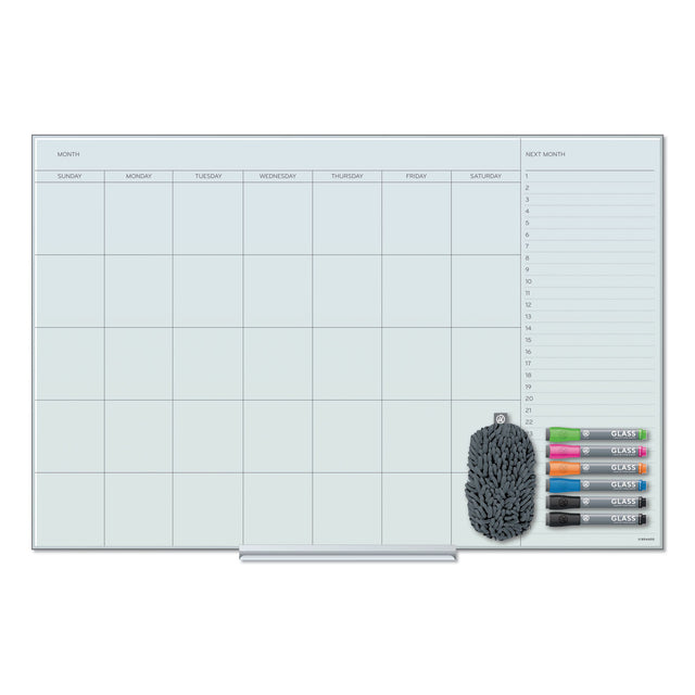 U Brands Floating Glass Dry Erase Undated One Month Calendar, 35 x 23, White (3967U0001)