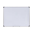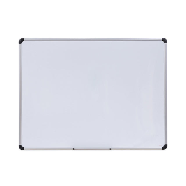 Stylish and functional dry erase board that also doubles as magnetic bulletin board. Built with a magnetic lacquered-steel surface that is suitable for frequent use and is compatible with all dry-erase markers. Modern, contoured aluminum frame features attractive, protective, black, rounded, plastic corners. Four-corner system enables vertical and horizontal mounting with included hardware. Dry erase markers and eraser sold separately. Board Type: Magnetic Dry Erase; Board Width: 48"; Board Height: 36"; Board Depth: 0.5".