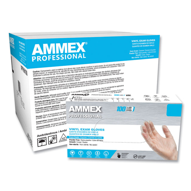 AMMEX Professional Vinyl Exam Gloves, Powder-Free, Medium, Clear, 100/Box (VPF64100)