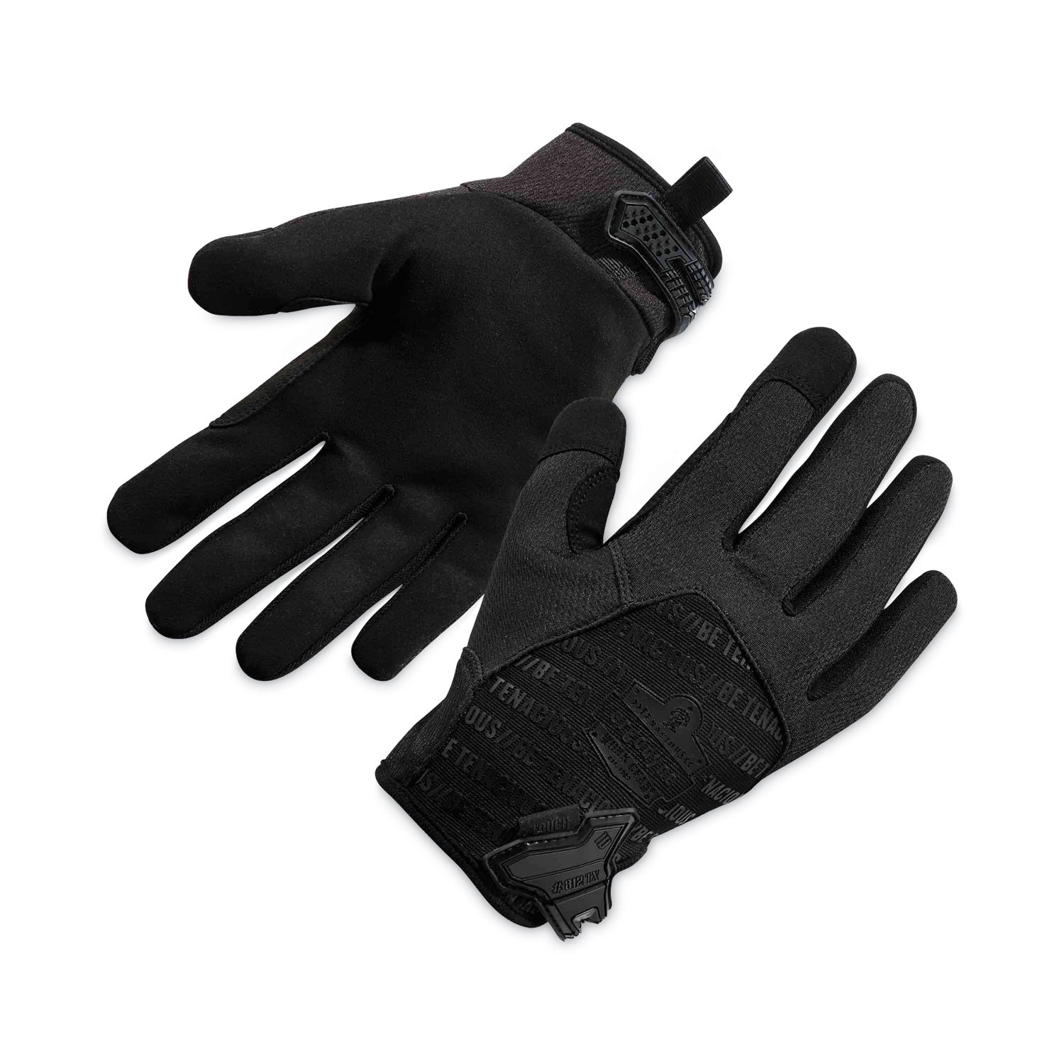 The ProFlex 812BLK High-Dexterity Black Tactical Gloves provide versatile hand protection for a variety of jobs or recreational activities. A synthetic leather palm and reinforced thumb saddle provide enhanced grip and feel when handling equipment and materials. These comfortable tactical gloves are made of a flexible and breathable poly mesh for cool, no-bulk wear. A low-profile hook-and-loop closure means a secure fit, while the pull-on tab makes for easy on and off. An ID space along the hook & loop closure helps workers keep track of their gloves. Plus, touchscreen-capable fingertips and thumbs so you can swipe, tap and type on smartphones and tablets without taking gloves off. The black-on-black color scheme is great for tactical or everyday use. Ideal for military and law enforcement professionals, mechanics, hunters, motorcyclists and shooting sports. Style: Trades; Wrist Style: Hook and Loop Closure; Material(s): Poly Mesh; Synthetic Leather; Thumb Style: Straight.
