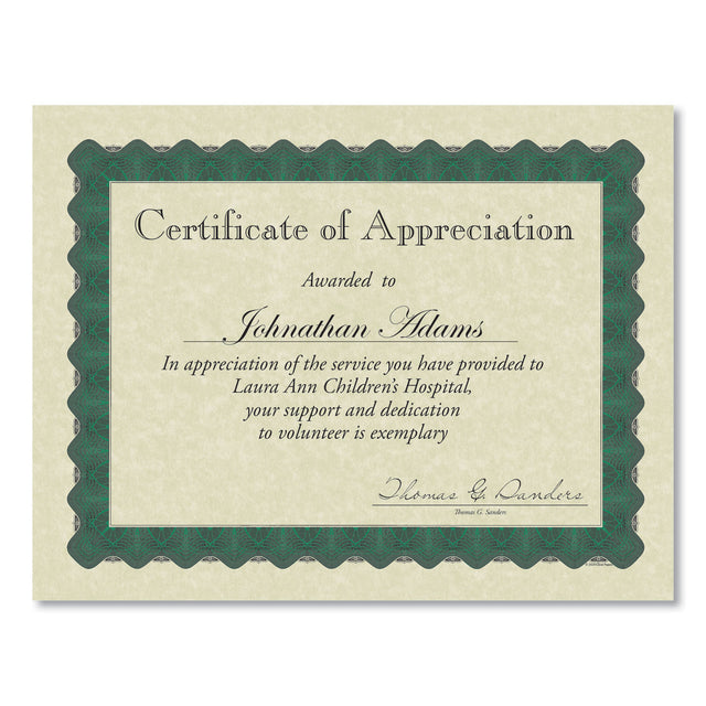 Great Papers! Metallic Border Certificates, 11 x 8.5, Ivory/Green with Green Border, 100/Pack (934200)