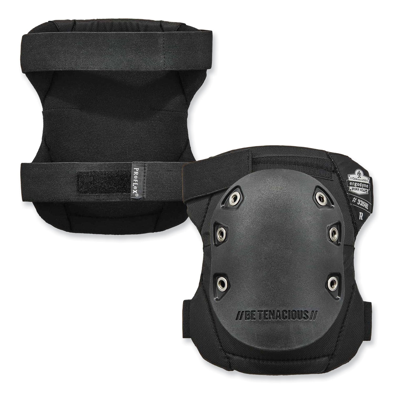 ergodyne ProFlex 335HL Slip-Resistant Black Rubber Cap Knee Pads, Hook and Loop Closure, Pair (18336)