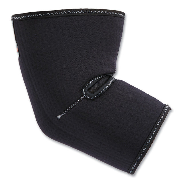The ProFlex 650 Neoprene Compression Arm Sleeve provides comfortable elbow and joint support on and off the worksite. The perforated neoprene stretch fabric compresses the elbow to improve blood flow, aiding in pain relief and joint flexibility. This compression elbow sleeve is a great solution for reducing pain and increasing productivity. This comfortable latex-free arm sleeve is made with a breathable perforated neoprene that does not limit range of motion. Soft spandex mesh in the elbow crease further enhances airflow for all-day wear. The ambidextrous pre-curved design fits naturally on either arm and easily slides on over the elbow for a snug fit. Low-profile, this elbow sleeve easily fits underneath clothing, but also can be worn on top depending on preference. To determine size, measure the circumference around the center of your elbow while the elbow is extended. Elbow/Knee Pad Type: Elbow; Size Group: Large; Closure Type: Slip-On; Material(s): Neoprene.