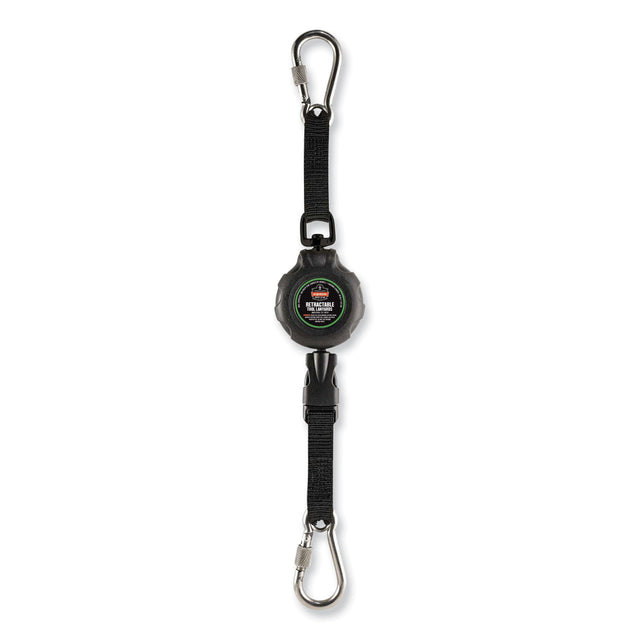 ergodyne Squids 3000 Retractable Tool Lanyard with Carabiner Anchor, 1 lb Working Capacity, 48" Long, Black (19300)