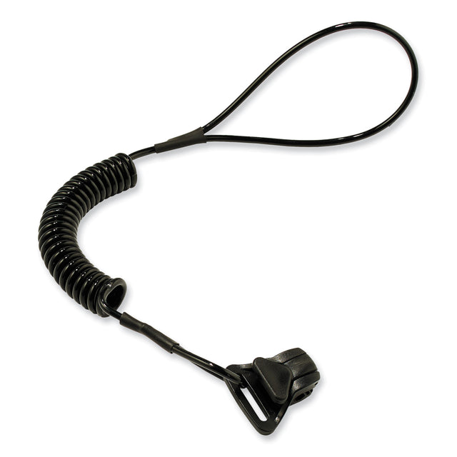 ergodyne Squids 3158 Coiled Lanyard with Clamp, 2 lb Max Working Capacity, 12" to 48" Long, Black (19158)