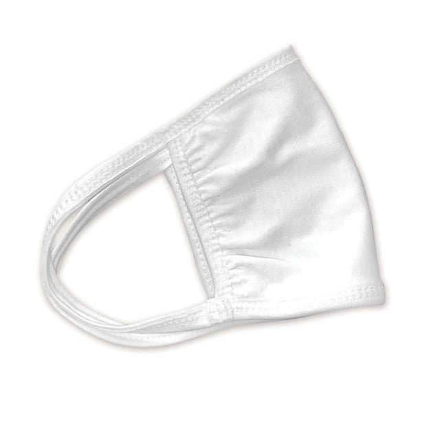 Three layer cotton construction. Machine washable. Antimicrobial finish to protect the mask's surface from airborne germs and bacteria. Skin-friendly and breathable. White. Material(s): 100% Cotton with Antimicrobial Finish; Size Group: One Size Fits All; Resistance: Airborne Germs; Bacteria; Cut Grass; Dust; Pollen.