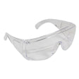Low-cost wraparound protection that fits over most prescription eyewear. Metal-free design with screw-less hinges. Hardcoated lenses for scratch resistance and longer life. Clear lenses allow maximum visible light transmission; ideal for indoor use. Lenses are made of a polycarbonate material that provides 99.9% UVA/UVB/UVC protection. Meets ANSI Z87.1+ standards for impact and certified to meet the requirements of CSA Z94.3. Style: Wraparound; Frame Color: Clear; Frame Material: Polycarbonate; Lens Material: Polycarbonate.
