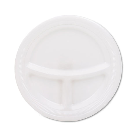 $5178Unit price /Unavailable Dart Mediumweight Foam Plates, 3-Compartment Plate, 9" dia, White, 125/Pack (9CPWQRPK)