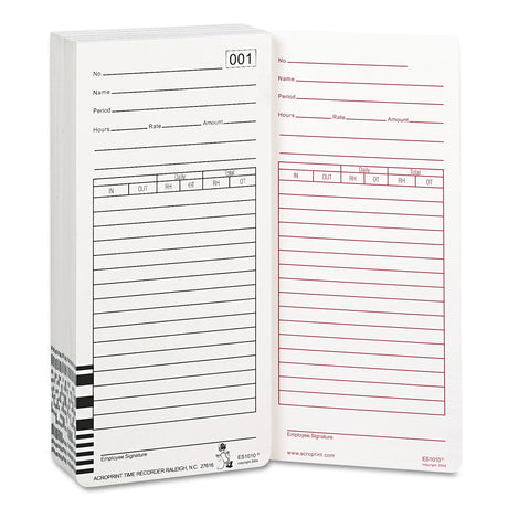 $3322$3654Unit price /UnavailableTime Clock Cards for Acroprint ES1000, Two Sides, 3.5 x 7, 100/Pack (099111000)