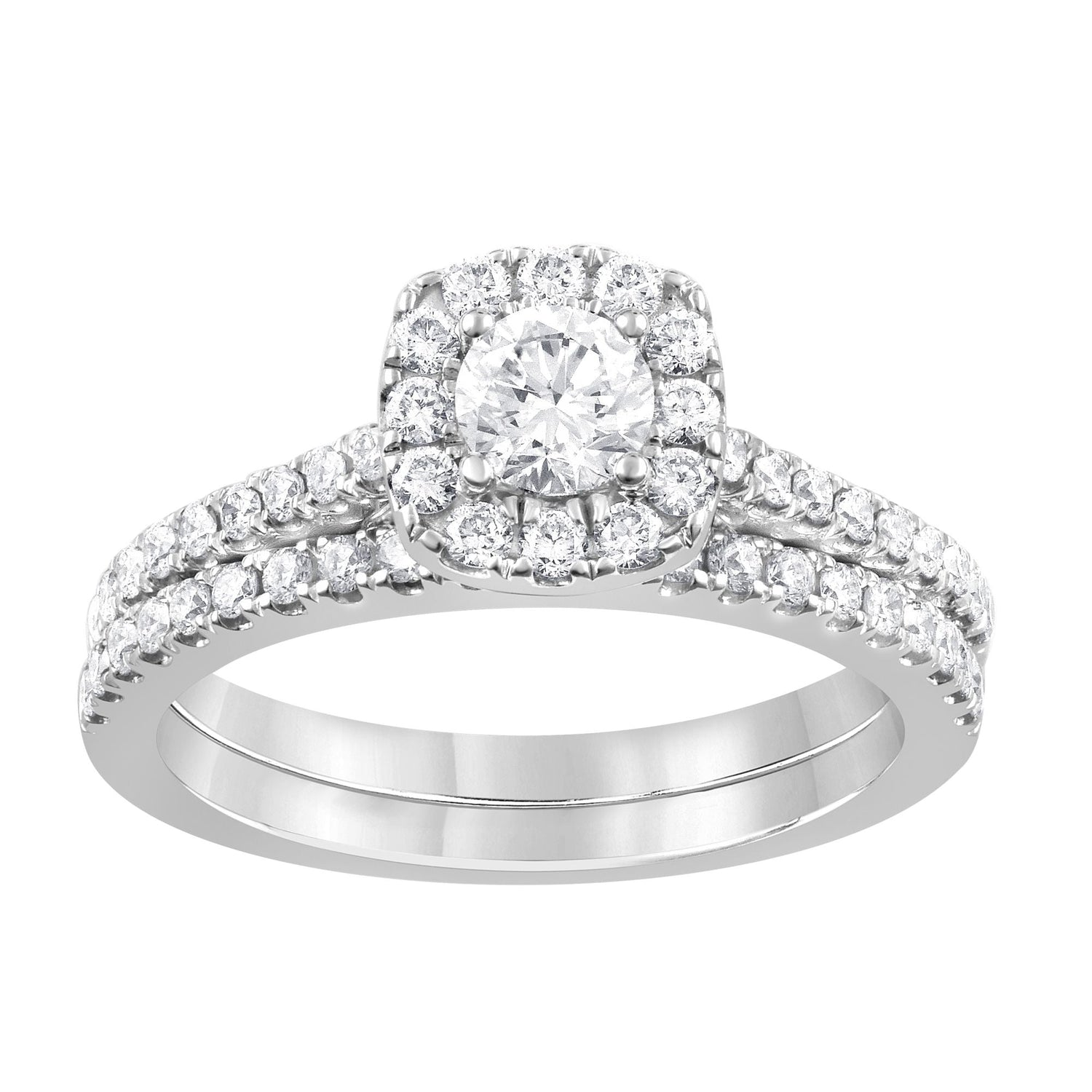 Diamond Halo Bridal Ring Set (1 ct. t.w.) in 14k White Gold | Elegant Round-Cut Design for Special Moments is backordered and will ship as soon as it is back in stock.