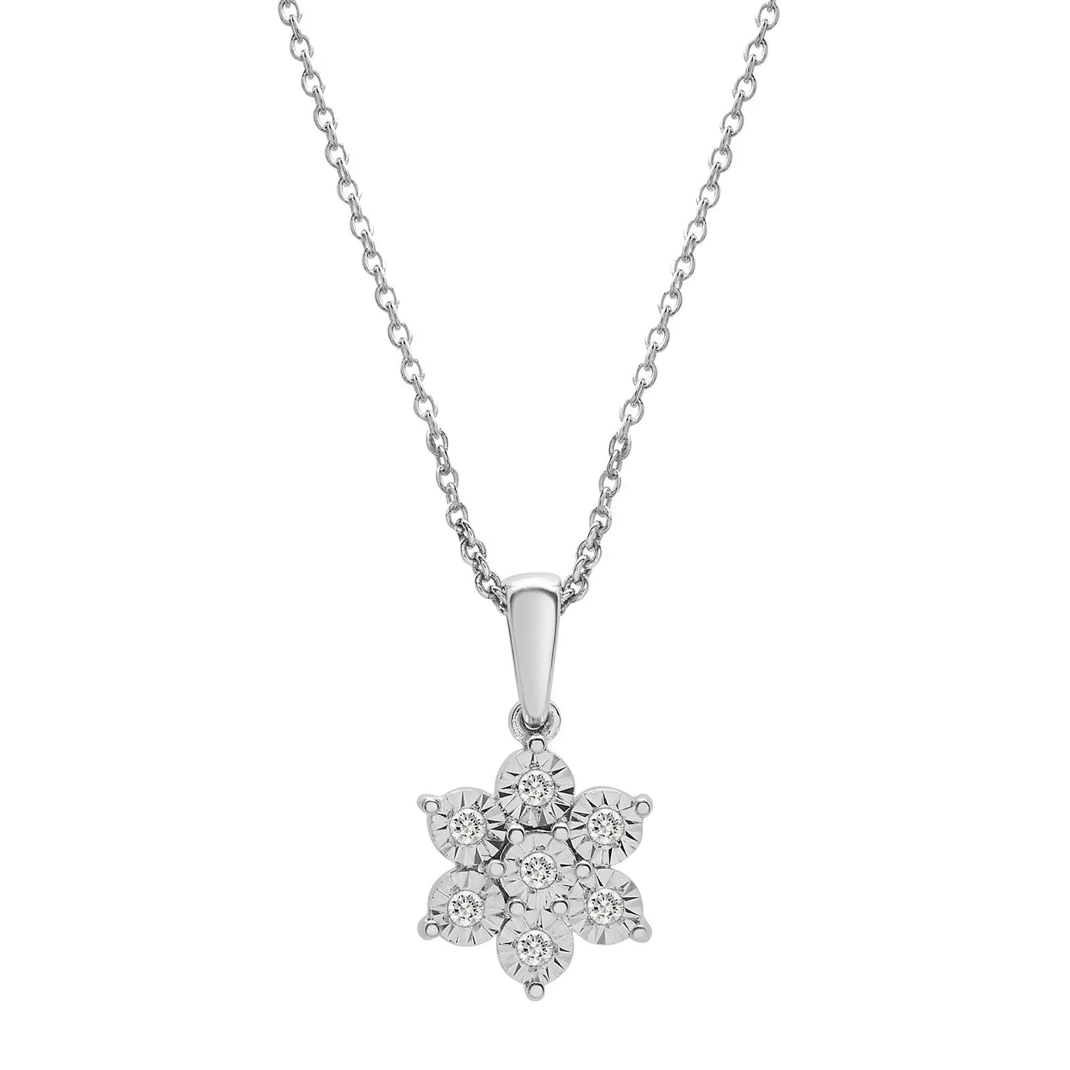 Diamond Flower Pendant (0.10 ct. t.w., Sterling Silver) | Elegant Miracle-Plate Accent Necklace