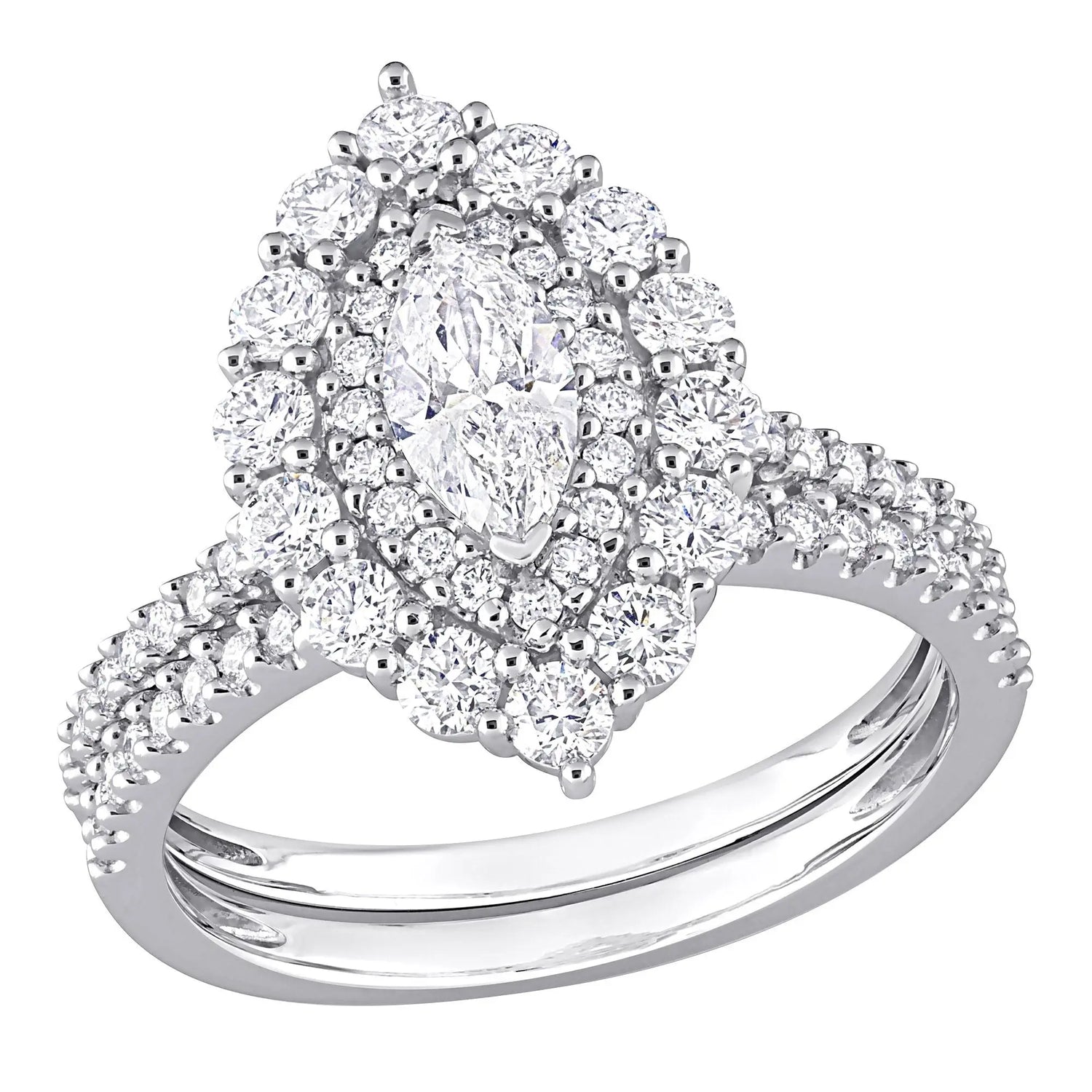 Diamond Marquise Halo Bridal Set (0.50 ct t.w., 14k White Gold) | Elegant Engagement Ring