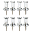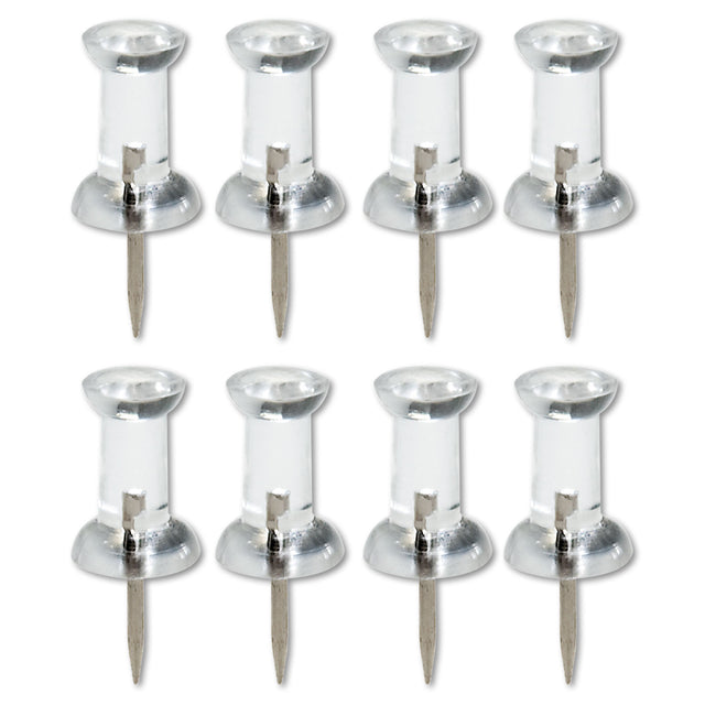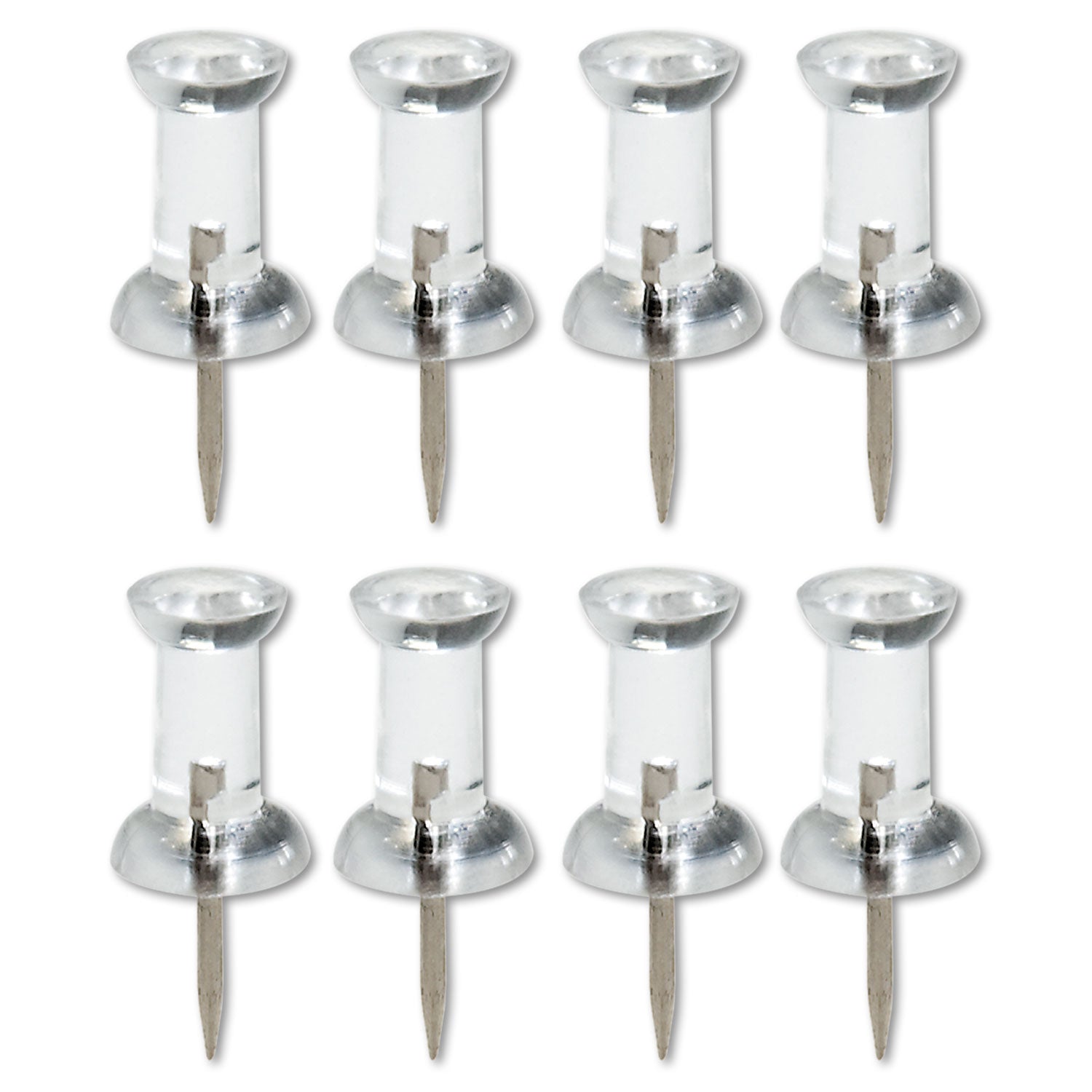 Easy to use, secures letters, notes and envelopes to bulletin boards and panels. Head Material: Plastic; Head Diameter: 0.5"; Pin Material: Steel; Color(s): Clear.