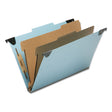 Heavy-duty portable folders for use in desk drawers or cabinets. Fold down hangers allow you to have a classification folder ready to go.Folders are made of durable 25-pt. pressboard covers with 1" capacity bonded fasteners. 2/5-Cut Exterior Folder Tabs & 1/3-Cut Interior Divider Tabs. Folder Size Type: Legal; Max Folder Expansion: 2"; Folder Color: Light Blue; Color Family: Blue.