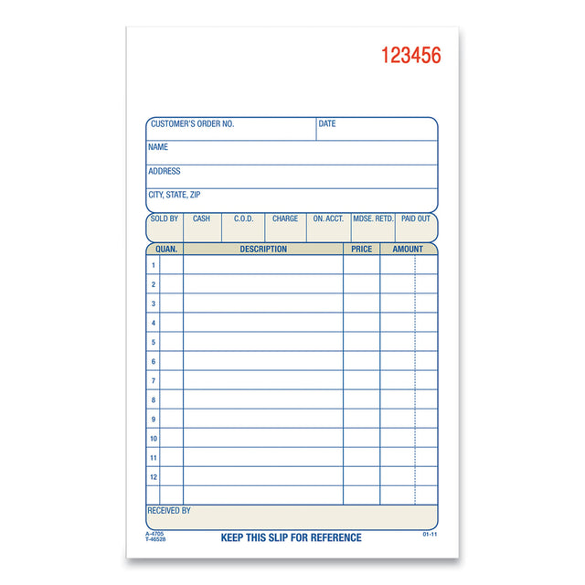 Adams 3-Part Sales Book, 12 Lines, Three-Part Carbonless, 4.19 x 7.19, 50 Forms/Pad, 10 Pads/Carton (TC470510)