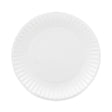 Stylish coated paper plates are ideal for the breakroom. Microwaveable and grease-resistant. Ribbed for extra strength. Dinnerware Type: Plate; Material(s): Paper; Shape: Round; Diameter: 9".