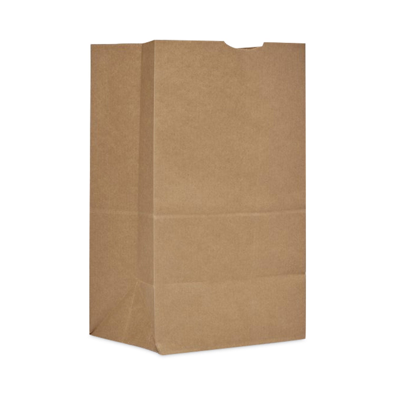 Kraft paper grocery bag. Durable construction for reliable containment. Flat bottom keeps items secure and allows bag to stand on its own. Bag Use Scenario: General Groceries; Bag Handle Indicator: No; Width: 12.5"; Depth: 14".