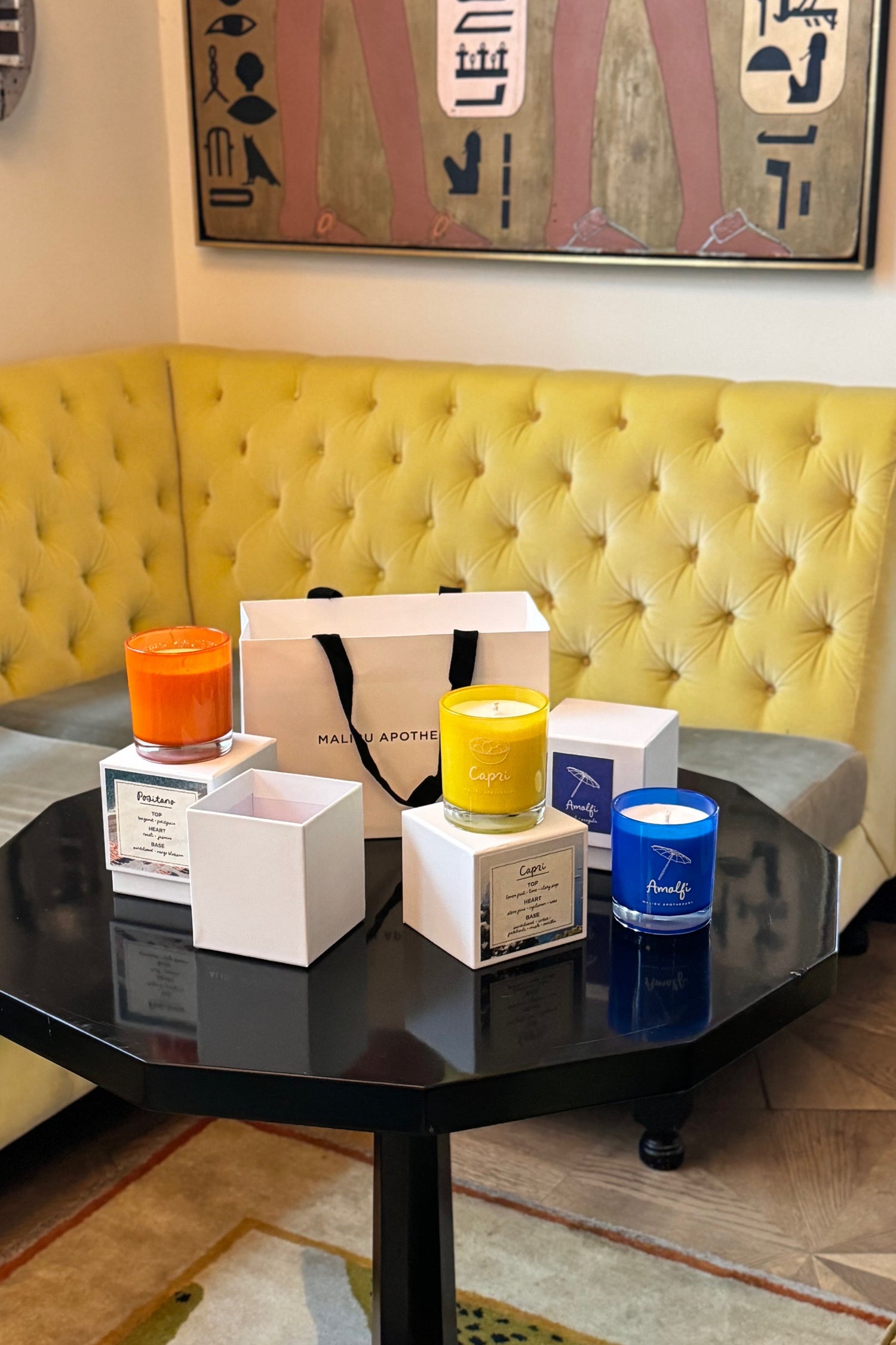 Amalfi is a fresh, green fragrance with zesty bergamot, lime, and cassis, a verdant heart of arugula and basil, and warm cinnamon and clove, softened by rose and lush garden vines.