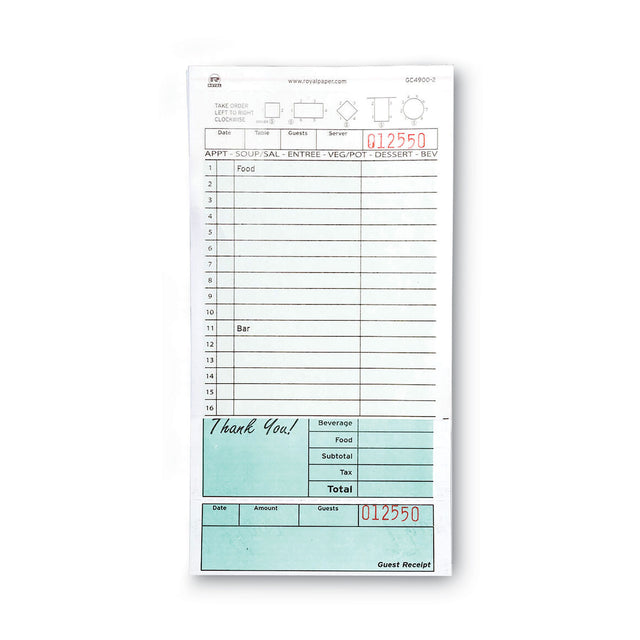 AmerCareRoyal Guest Check Pad, 16 Lines, Two-Part Carbonless, 4.2 x 8.25, 50 Forms/Pad, 50 Pads/Carton (GC49002)