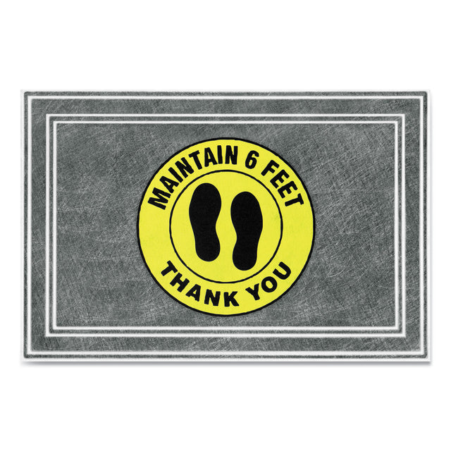 Apache Mills Message Floor Mats, 24 x 36, Charcoal/Yellow, "Maintain 6 Feet Thank You" (3984528802X3) is backordered and will ship as soon as it is back in stock.