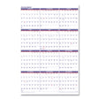 Entire year is displayed on one page with four rows of three months each. Alternating quarters are shaded and federal holidays highlighted in red for clear differentiation. Metal bound at top and bottom with hanging eyelet. Contemporary design with plenty of writing space. Printed in blue and red ink on high-quality, recycled paper. Dated/Undated: Dated; Calendar Format: Yearly; Calendar Spread Format: One Year per Page; Edition Year: 2025.