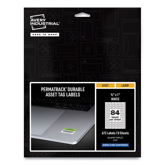 Avery PermaTrack Durable White Asset Tag Labels, Laser Printers, 0.5 x 1, White, 84/Sheet, 8 Sheets/Pack (61527)