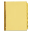 More efficient organization for alphabetical chronological, or numerical sorting. The process becomes simple with handy preprinted tabs to help you get started organizing your paperwork instantly. Gold binding edge is reinforced so you can turn pages secure in the knowledge that your dividers won't tear easily from the binder rings. Easy-to-read black lettering helps you find the right section at a glance. Index Divider Style: Arabic Numeric; Index Divider Size: 11 x 8.5; Punched/Unpunched: 3-Hole Punched; For Use With: Ring Binders.