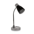 Sometimes simple is all you need. Adjustable LED Desk Lamp features a classic design that's ideal for any table, worksurface or desktop. Whether in a dorm-room, office or bedroom, this light is there to guide you, and its attractive, compact format takes up a minimal amount space. A polished metal finish provides an element of sophistication, while its acrylic accents deliver an element of contemporary styling. Adjustable lamp head and flexible gooseneck stem allow you to effortlessly position your illumination. Weighted round base ensures stability, even when the neck's fully extended. Energy-efficient LED bulb provides longer-lasting performance at merely a fraction of the energy consumption, 85% less energy, in fact, when compared to incandescent bulbs, while delivering a brighter, flicker-free light zone that's clear of annoying shadows, halos and glares. Base Color: Chrome/Black; Plug Type: 2 Prong; Height: 20"; Base Diameter: 4.5".