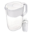 Drink cleaner, great tasting tap water with this Brita water pitcher, made without BPA, and the included Brita filter. Only Brita filters are certified to reduce chlorine (taste and odor), copper, mercury and cadmium in Brita systems. (Substances reduced may not be in all users' water. See Performance Data Sheet available on supplier's website.) One filter can replace up to 300 16.9 oz plastic bottles. The Brita water pitcher's flip top lid makes refilling a breeze, while the SmartLight indicator is Brita's most accurate and precise pitcher filter life indicator. This large water pitcher comes with one water filter, which should be changed every 40 gallons or about two months for best results. (Approximate timing based on average family usage and 40-gallon filter life). Start drinking healthier, great tasting water with Brita today. Number of Cups: 10; Color(s): Clear; Material(s): Plastic; Handle Material(s): Plastic.