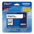 Brother TZe Standard Adhesive Laminated Labeling Tape, 0.7" x 26.2 ft, Black on White, 2/Pack (TZE2412PK)