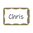Unique tabbed edge makes it easy to peel off the badges' backing and apply. Ideal for small meetings, seminars and conferences. Do not apply to vinyl, leather, suede, corduroy or silk. This product will be cheerfully replaced with one of equal value if defective in materials, manufacturing or packaging at the time of purchase. Border-Style. Orientation: Horizontal; Name Badge Label Length: 2.25"; Name Badge Label Width: 3.5"; Name Badge Label Color(s): White/Gold.