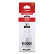 Genuine GI-21 Pigment Ink Tank designed specifically for select Canon MegaTank printers. Pigment-based ink formulation for sharp text and vibrant images on plain paper. Specialized ink bottles created for each color to fit and fill compatible MegaTank printers easily! Device Types: Inkjet Printer; Color(s): Black; Supply Type: Ink; Market Indicator (Cartridge Number): GI-21.