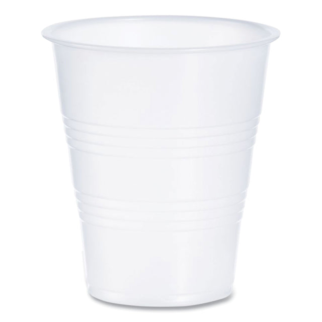 Perfect for any occasion where cold beverages are being served. Double sidewall ridges for added strength. Crack-resistant design helps avoid spills. Translucency allows for better drink identification. Cup Type: Cold; Capacity (Volume): 7 oz; Material(s): HIPS - High-Impact Polystyrene; Color(s): Translucent.