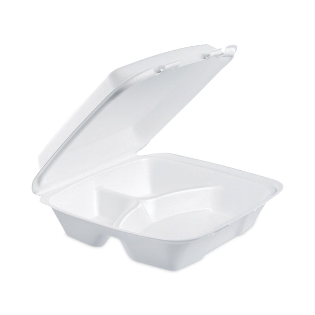 Dart Insulated Foam Hinged Lid Containers, 3-Compartment, 9 x 9.4 x 3, White, 200/Pack, 2 Packs/Carton (90HT3)