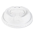 Convenient lid offers users a completely sealed beverage until they're ready to drink. When ready to drink, just pull the tab open and lock it back out of the way. Unique lid provides the ability to securely reclose the lid until ready to resume drinking, again and again. The Drink Well Plug creates a strong, leak-resistant seal, for security on-the-go. Drink Well Plug also serves as a protective shield to prevent contamination of beverages. Fits: 10 oz to 24 oz Hot Paper Cups; Material(s): Polystyrene; Color(s): White; Color Family: White.