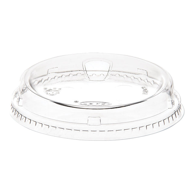 The perfect solution to going strawless. Specially designed recessed sip hole allows liquid to flow while holding ice cubes back. Features an elevated platform which allows extra room for toppings. Angled reservoir contains spills on the lid and diverts liquids back into the cup. One lid fits the five most popular cold cup sizes, reducing inventory and increasing operational efficiencies. Fits: 12 oz to 26 oz Cold Cups; Material(s): PET; Color(s): Clear; Color Family: Clear.