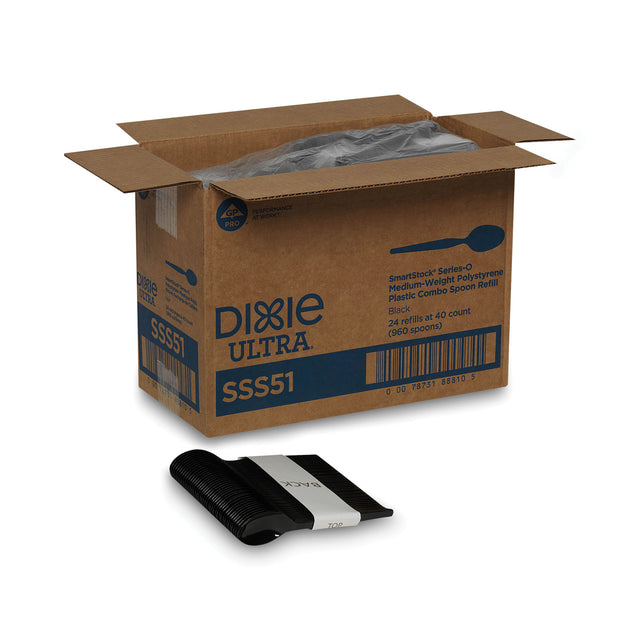 Dixie SmartStock Plastic Cutlery Refill, Spoons, 6", Series-O Mediumweight, Black, 40/Pack, 24 Packs/Carton (SSS51)