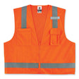 The GloWear 8249Z Surveyors Vest is an ANSI 107 Type R, Class 2 economy vest with a 3.6 oz polyester solid front and breathable 3.3 oz polyester mesh back. This hi-vis vest features 2 reflective tape for enhanced low-light visibility. With two interior and two exterior pockets, including a cell phone chest pocket, this vest provides ample storage for pens, notebooks, tablets and more. A single mic tab allows convenient radio access, and a zipper closure makes for easy on and off. Apparel Type: Safety Vest; Material(s): Polyester; Color(s): Orange; Color Family: Orange.