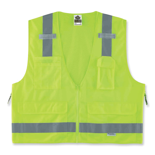 ergodyne GloWear 8250Z Class 2 Surveyors Zipper Vest, Polyester, Small/Medium, Lime (21423)