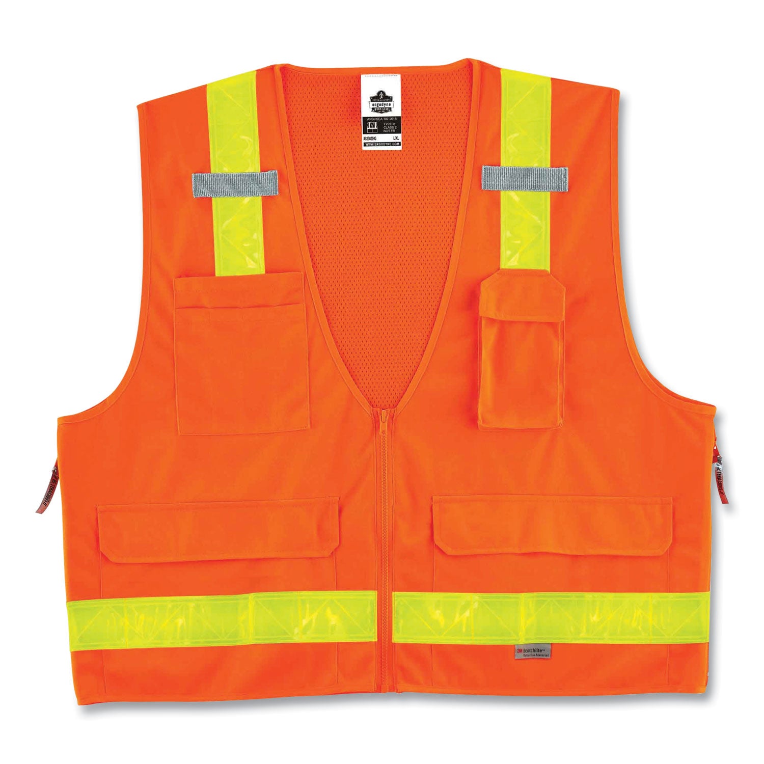 ergodyne GloWear 8250ZHG Class 2 Hi-Gloss Surveyors Zipper Vest, Polyester, Small/Medium, Orange (21433)