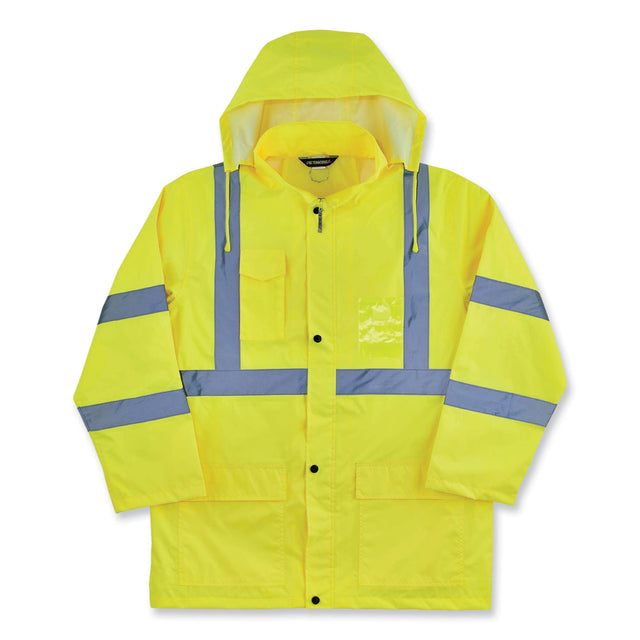 ergodyne GloWear 8366 Class 3 Lightweight Hi-Vis Rain Jacket, Polyester, X-Large, Lime (24335)