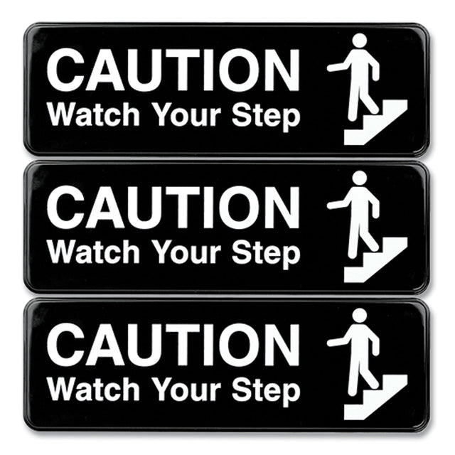 Excello Global Products Caution Watch Your Step Indoor/Outdoor Wall Sign, 9" x 3", Black Face, White Graphics, 3/Pack (HD0268S)