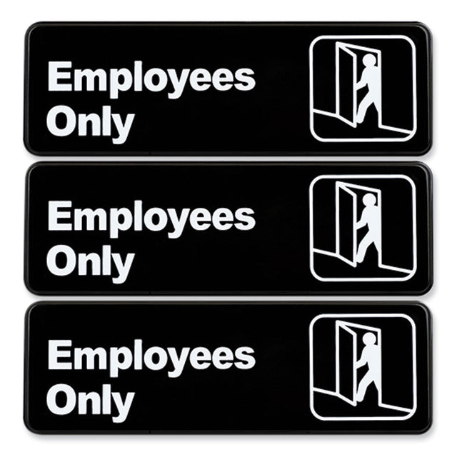 Excello Global Products Employees Only Indoor/Outdoor Wall Sign, 9" x 3", Black Face, White Graphics, 3/Pack (HD0050S)