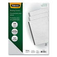Fellowes high-quality 65-lb presentation covers for binding systems have a classic grain texture and add a professional look and feel to any document. Adaptable to any binding system (except thermal). Use these binding covers in the office, home office, school, or anywhere you need to keep documents organized. Look for other binding accessories from Fellowes to combine with your Fellowes binding machines. Round Corners. Back Cover Color(s): White; Front Cover Color(s): White; Size: 11.25 x 8.75; Material(s): 65 lb Paper Stock.