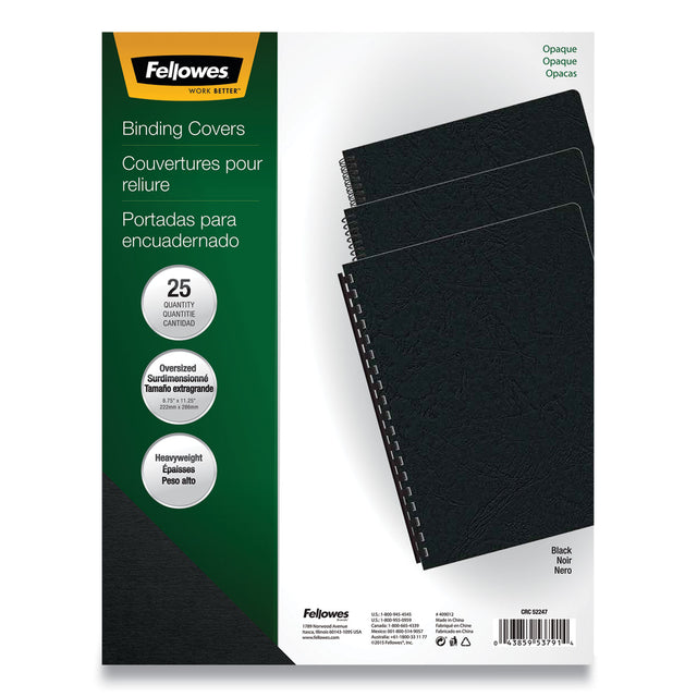 Fellowes Futura Presentation Covers for Binding Systems, Opaque Black, 11.25 x 8.75, Unpunched, 25/Pack (5224701)