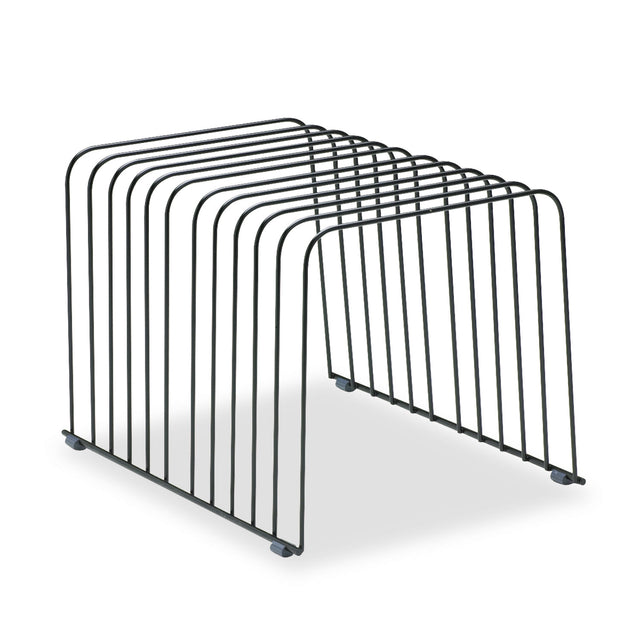 Fellowes desktop organizer with a wire design keeps files in view. Eleven "vari-spaced" dividers for files or folders. 100% recyclable. Perfect for your office, home office, school, or wherever you need to organize important paper or documents. Number of Compartments: 11; For File Size: Letter to Legal; Load Orientation: Top/Side; Color(s): Black.