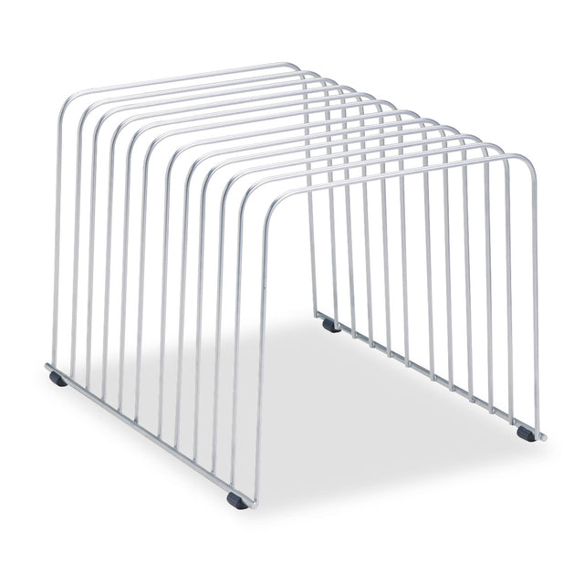 Fellowes desktop organizer with a wire design keeps files in view. Eleven "vari-spaced" dividers for files or folders. 100% recyclable. Perfect for your office, home office, school, or wherever you need to organize important paper or documents. Number of Compartments: 11; For File Size: Letter to Legal; Load Orientation: Top/Side; Color(s): Silver.