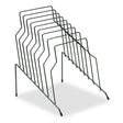 Fellowes step file open wire design keeps documents and files in clear view. Stepped sections for easy viewing and quick access to folders, letter and legal size papers. Wire design with rubber-tipped feet to protect your desktop. 100% recyclable. Perfect for your home or home office, school, or anywhere else you need to organize your important papers and documents. Number of Compartments: 8; For File Size: Letter to Legal; Load Orientation: Top/Side; Color(s): Black.